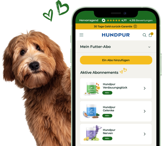 Der Lieferintervall beträgt wahlweise 14, 30 oder 60 Tage. Nach der ersten Bestellung kannst Du diesen jedoch individuell ändern. Dann bekommst Du Dein Hundpur-Produkt zum Beispiel nach 45 Tagen.