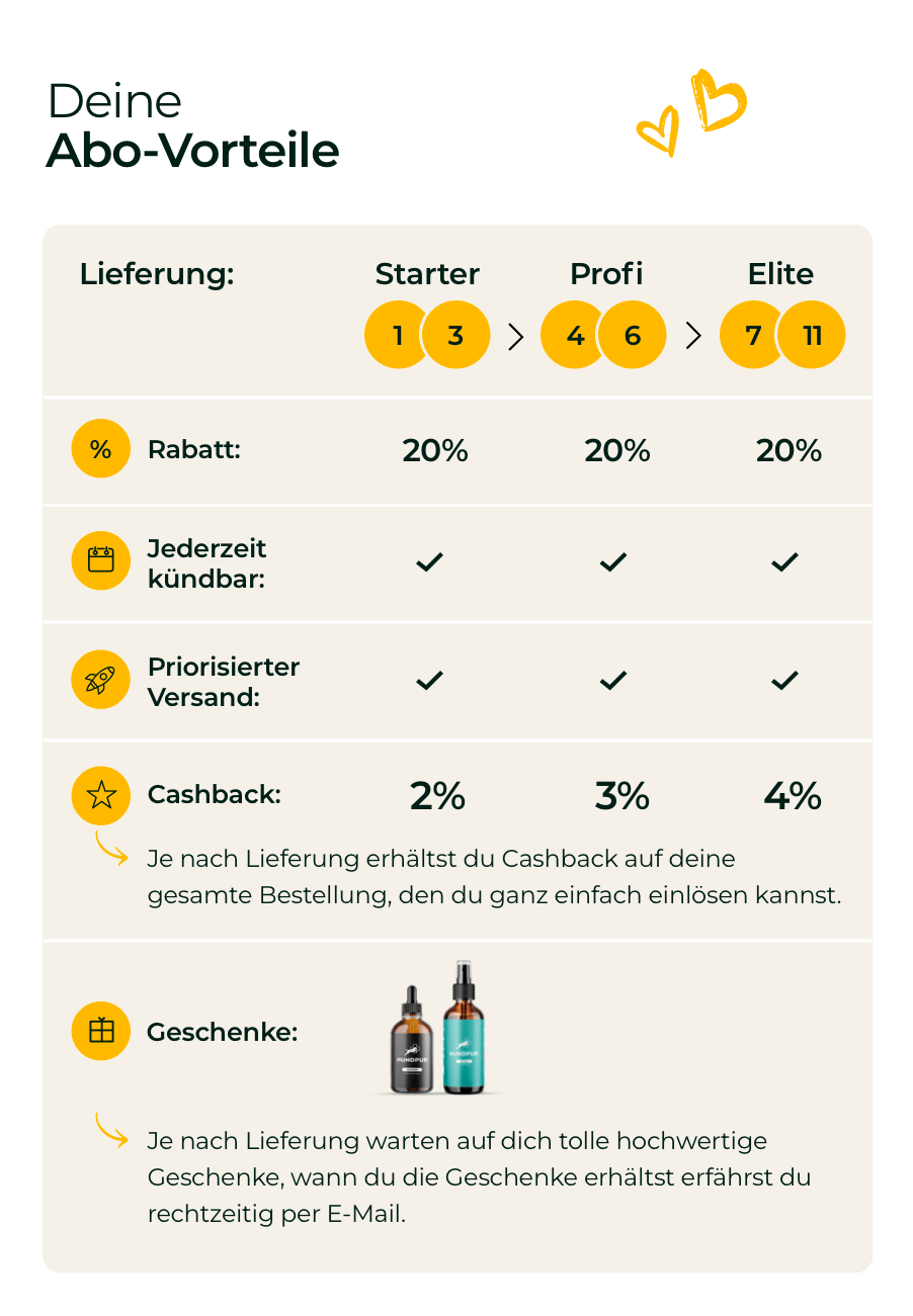Erfahre selbst, wie Hundpur® Verdauungsglück Deinem Hund helfen kann, sich wieder rundum wohlzufühlen!